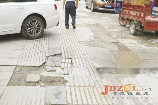 新厂西路元祖食品门前大面积的地砖破损缺失形成了一处淤泥污水坑;新厂西路德庄火锅门前,路面被过往汽车碾压造成严重破损,此处虽然已经加装了防护栏禁止机动车辆进入,但却未对破损路面进行修复;新厂西路与马鞍山路、曙光路、竟成路交接的转盘旁更是破损严重,满地的地砖碎片和破损造成的淤泥污水坑。