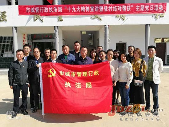 景德镇在线讯(舒瓷平文/图)11月9日,景德镇市城市管理行政执法局机关全体党员及入党积极分子,前往浮梁县峙滩镇清溪村开展党的十九大宣讲主题党日活动,并走访慰问贫困家庭,为困难群众送去了食油、副食品、日用品等慰问品,带去了党和政府对困难群众的关怀和慰问。